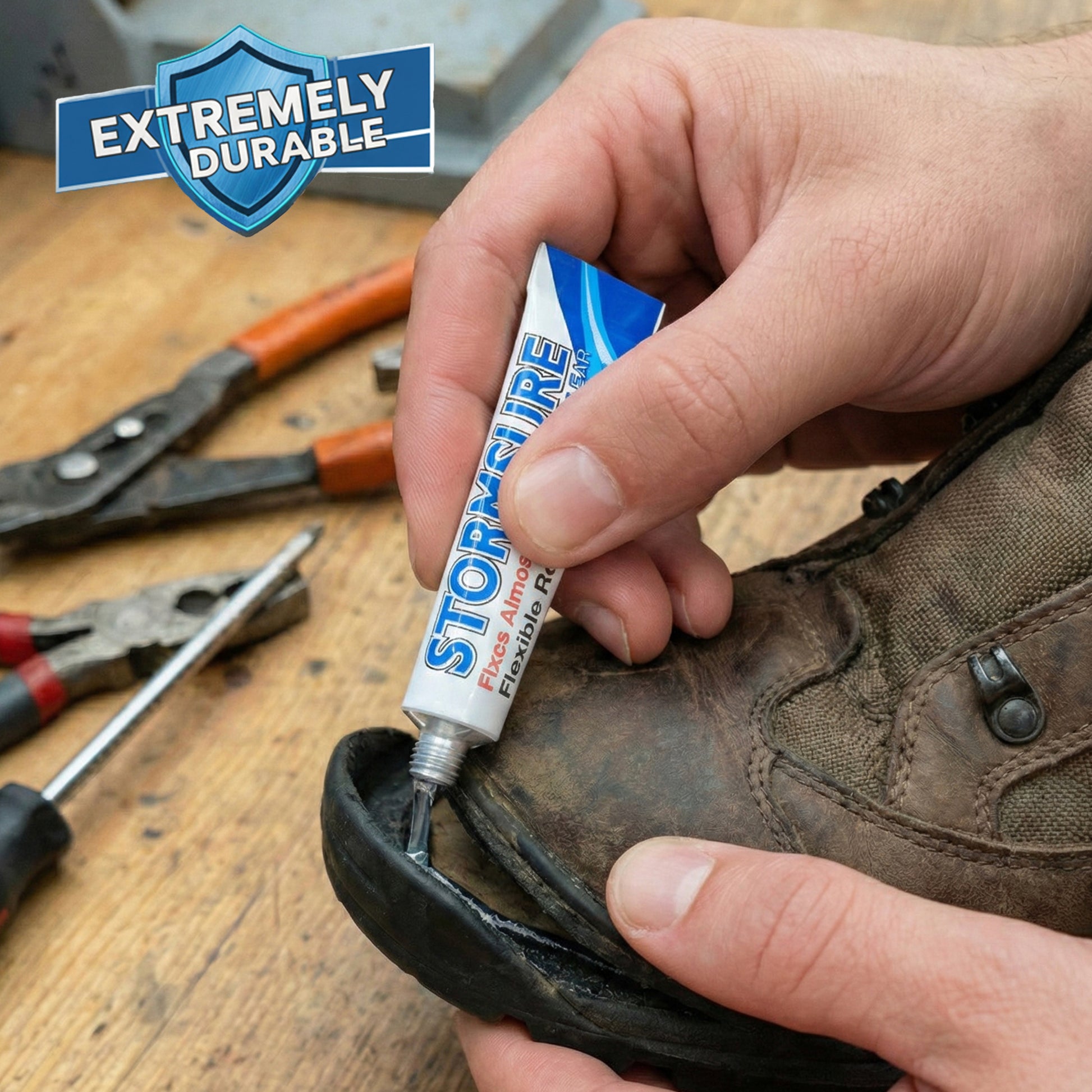 Stormsure® Flexible Repair Adhesive – Clear is a versatile, high-strength adhesive designed for a wide range of repair tasks where flexibility, durability, and waterproof performance are essential. This clear adhesive cures to form a tough yet elastic bond, making it suitable for repairs that must withstand movement, abrasion, and wet conditions.